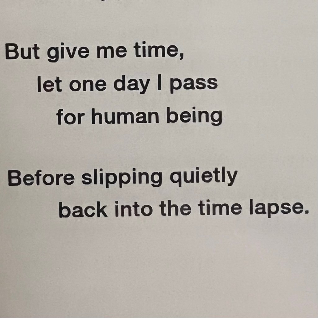 Despite its wordy title and having been completed over the course of 10 years, this book clocks in at a slight 68 pages. Don’t confuse brevity with value though. There are some real gems in this small volume. This verse from In a Time Lapse 2 is one of my favorites.
