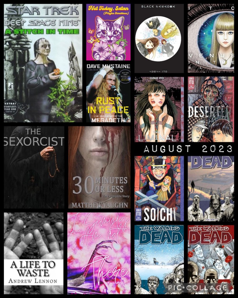 August reads. Heavy on the manga. Horror, of course. I liked The Walking Dead graphic novel more than the tv show. Favorite read this month was the Star Trek book, A Stitch in Time. Let’s break it down by rating and then talk about them a bit.